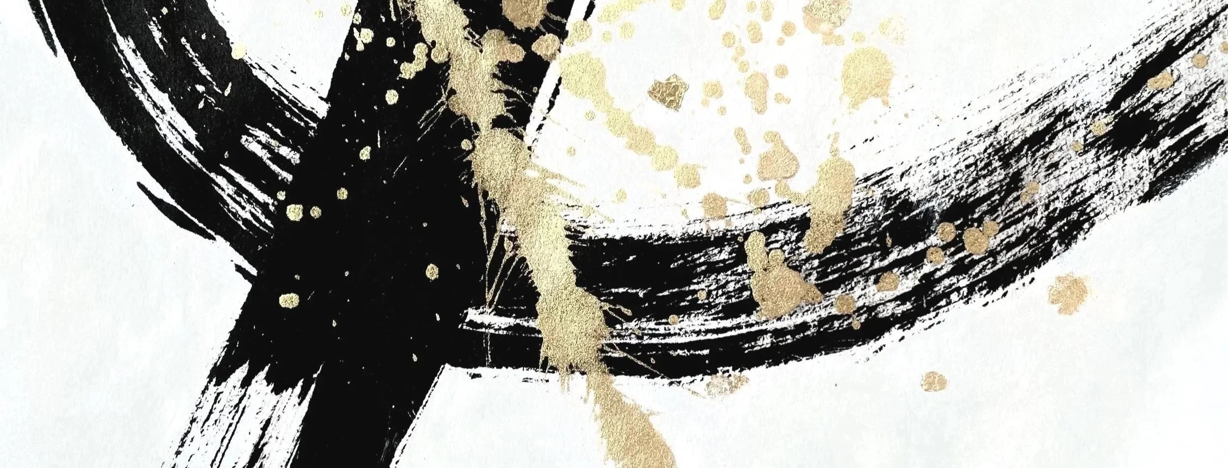 Schwarz-weißer abstrakter Tinten- oder Aquarellmalerei mit dynamischen Pinselstrichen und Spritzern.